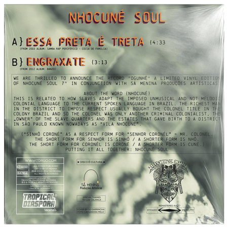 Right now Nhocuné Soul is getting their first two songs on a 7 inch vinyl record to be released by Tropical Diaspora Records as a bonus record in the also new solo music project of front man and founder Renato Gama called Olhos Negros Vivo.